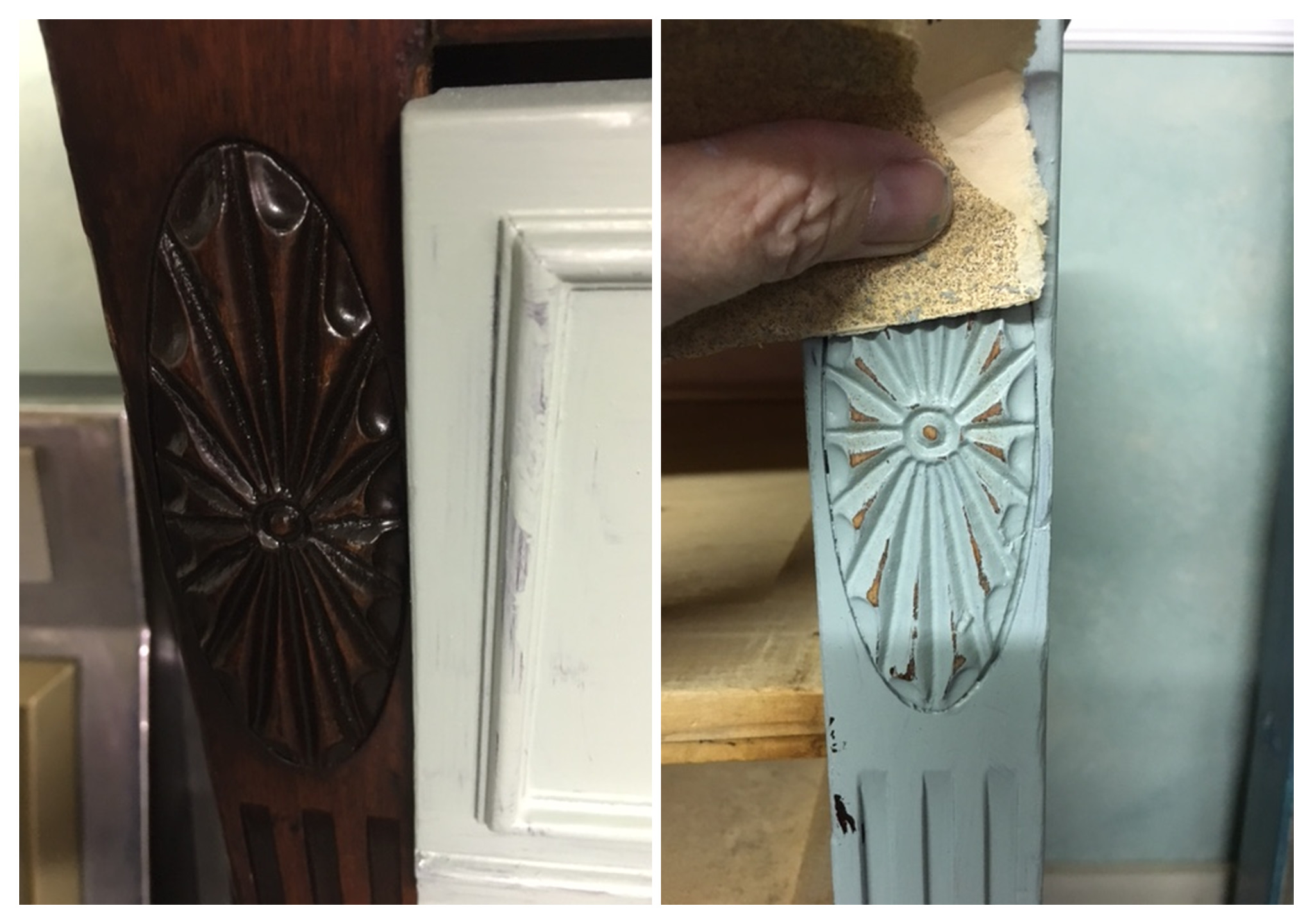 image2_collageI didn’t even notice this beautiful flower carving on each side of the cabinet until right before I painted it.  It really stands out after it was painted and distressed.  My friend had asked if I could add some decorative pieces to it and I sent her this picture to show that it had some already on it.