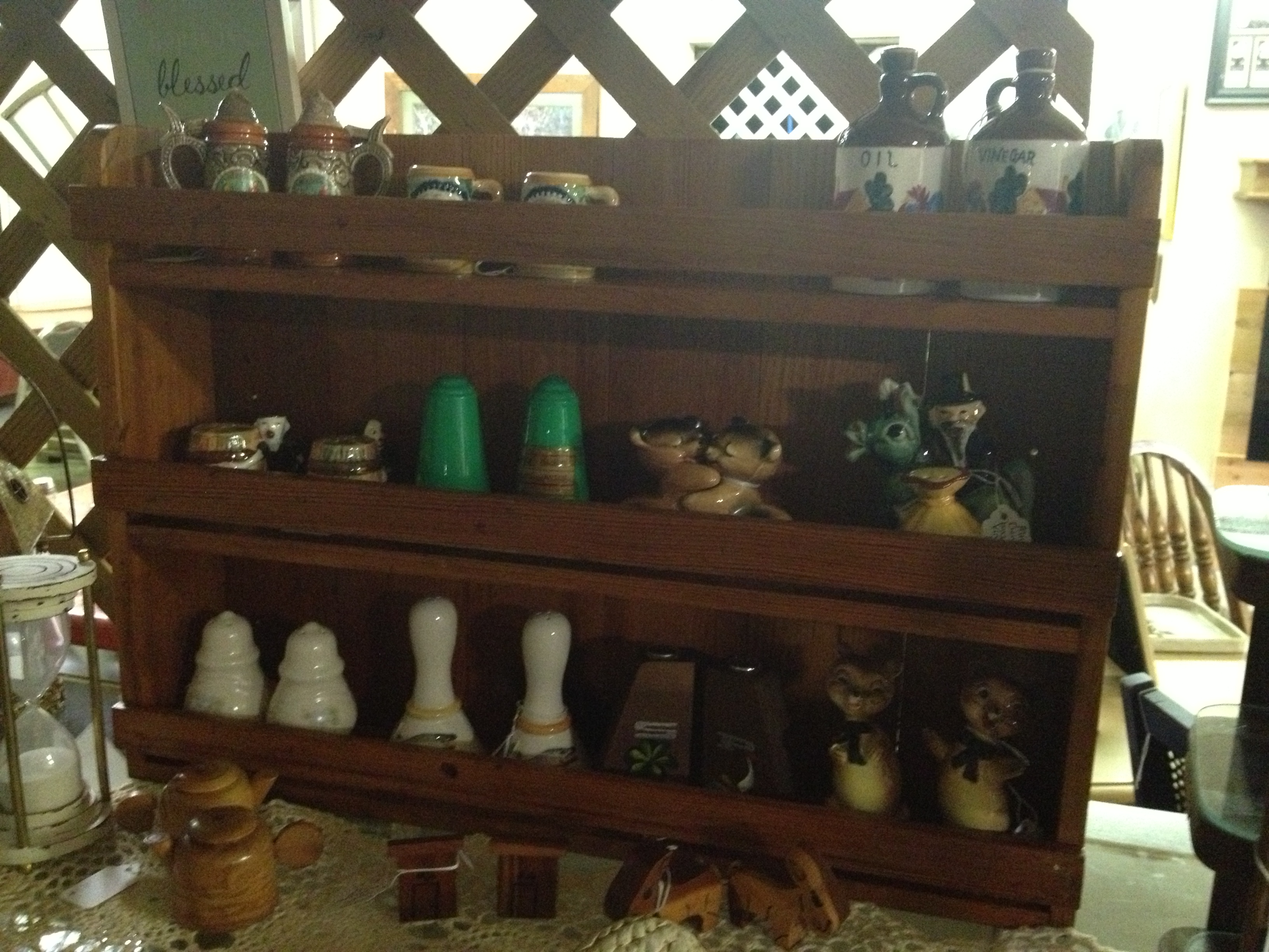We have acquired a large collection of vintage salt and pepper shakers from 50’s and earlier.  They came from an estate in Oakdale, Louisiana.  So much variety- animals, fruits and vegetables, characters, vintage items such as pot belly stoves and outhouses.  They are made from a variety of materials such as wood, porcelain, plastic, glass, and china.  There is something for every collector and are priced very reasonably.