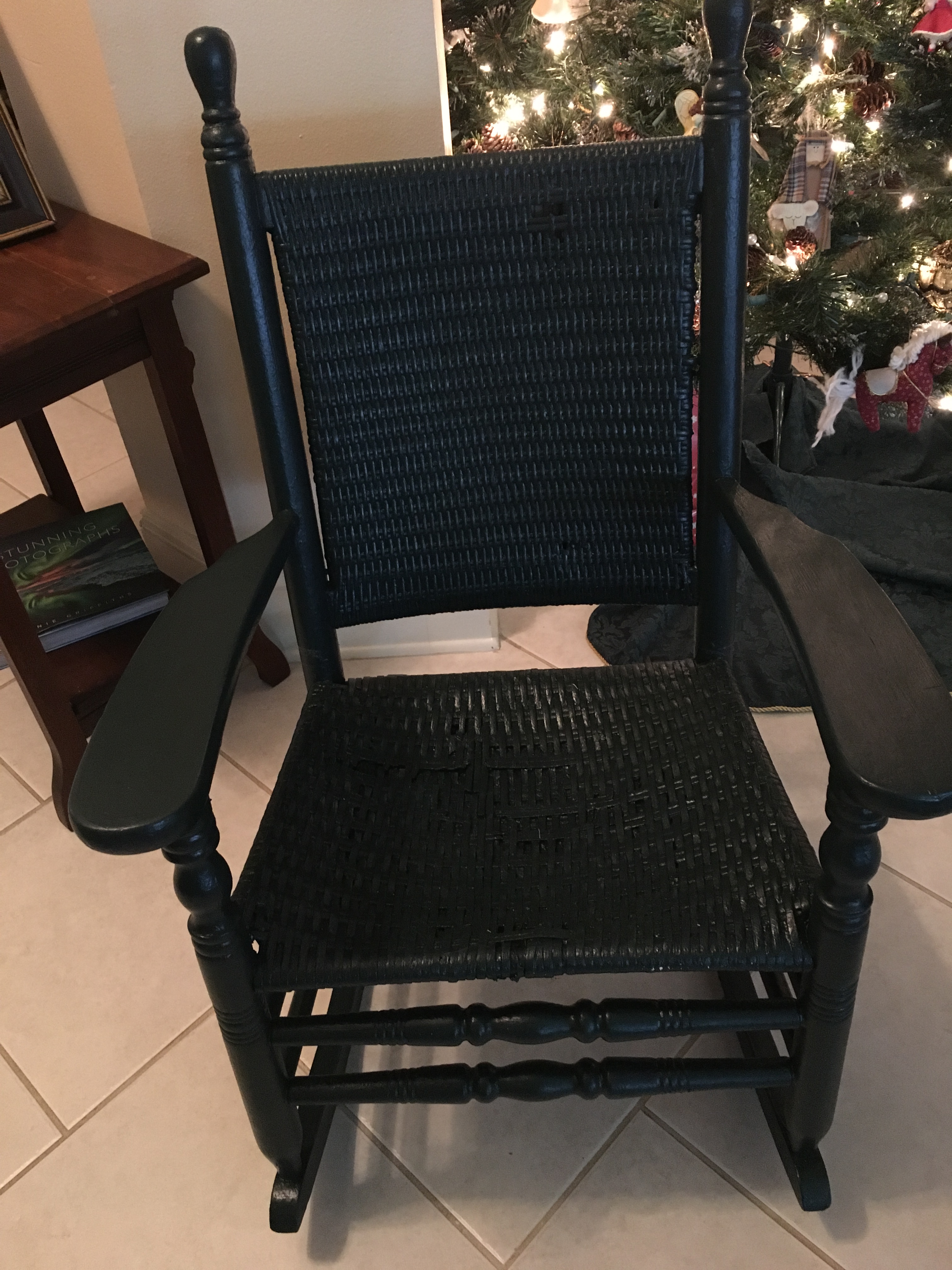 I  decided that I would redo this rocker for my oldest daughter to put on her porch when she gets to move back to her home that flooded.  She loves sitting outside and drinking her coffee. She lost her two rockers in the flood. One had been given to her as a house warming gift (one of those nice Cracker Barrell rockers) and the other one was given to us as a wedding gift 37 years ago. I had used it in my classroom for many years and gave it to her when I retired to rock her babies in.  She would appreciate the rocker even if it does have some issues.