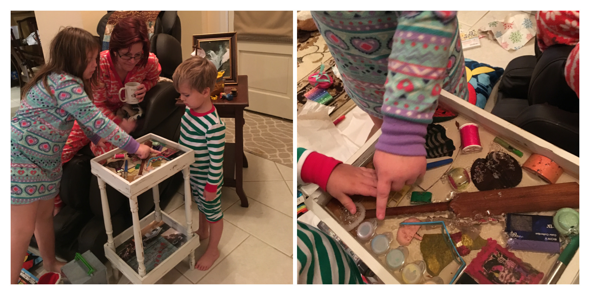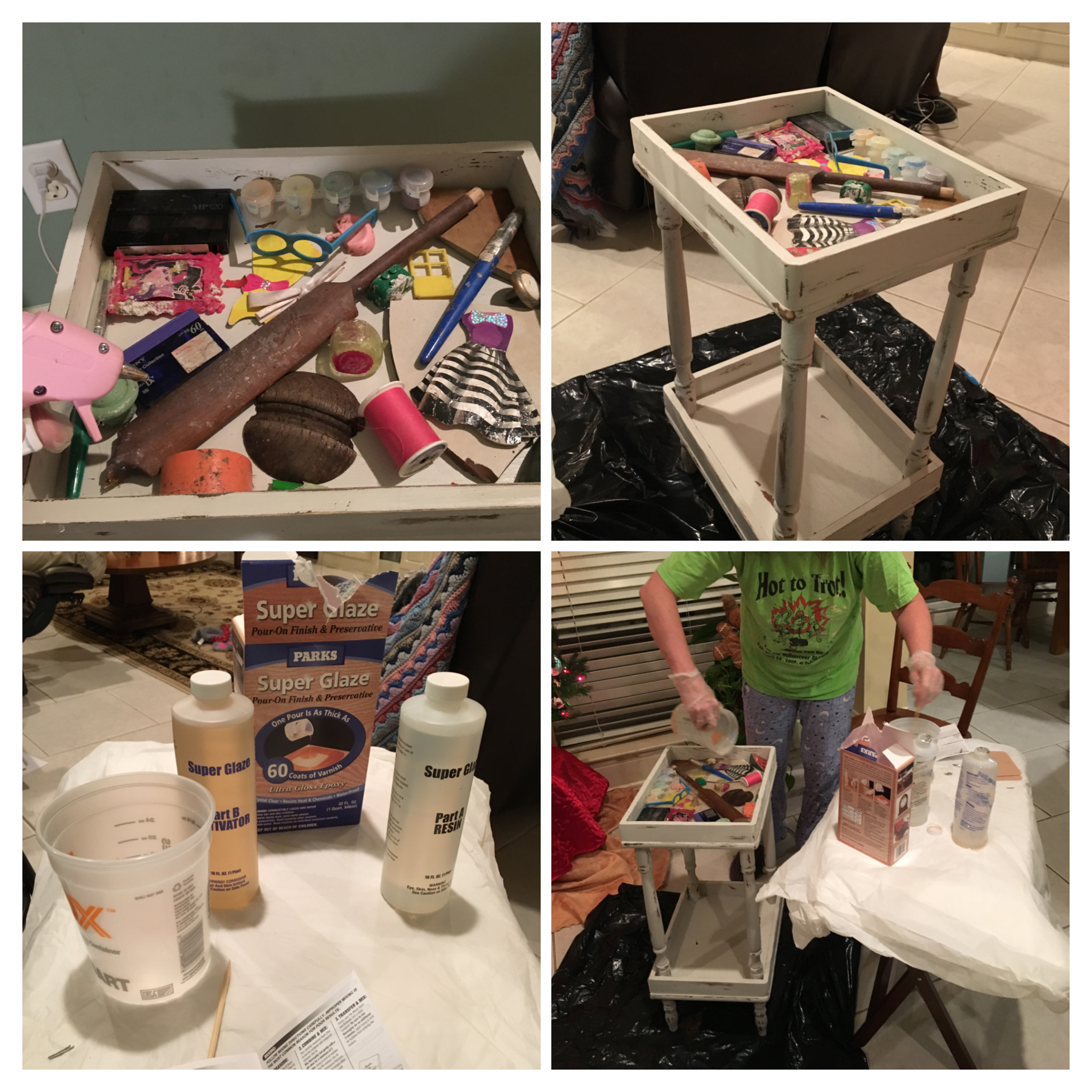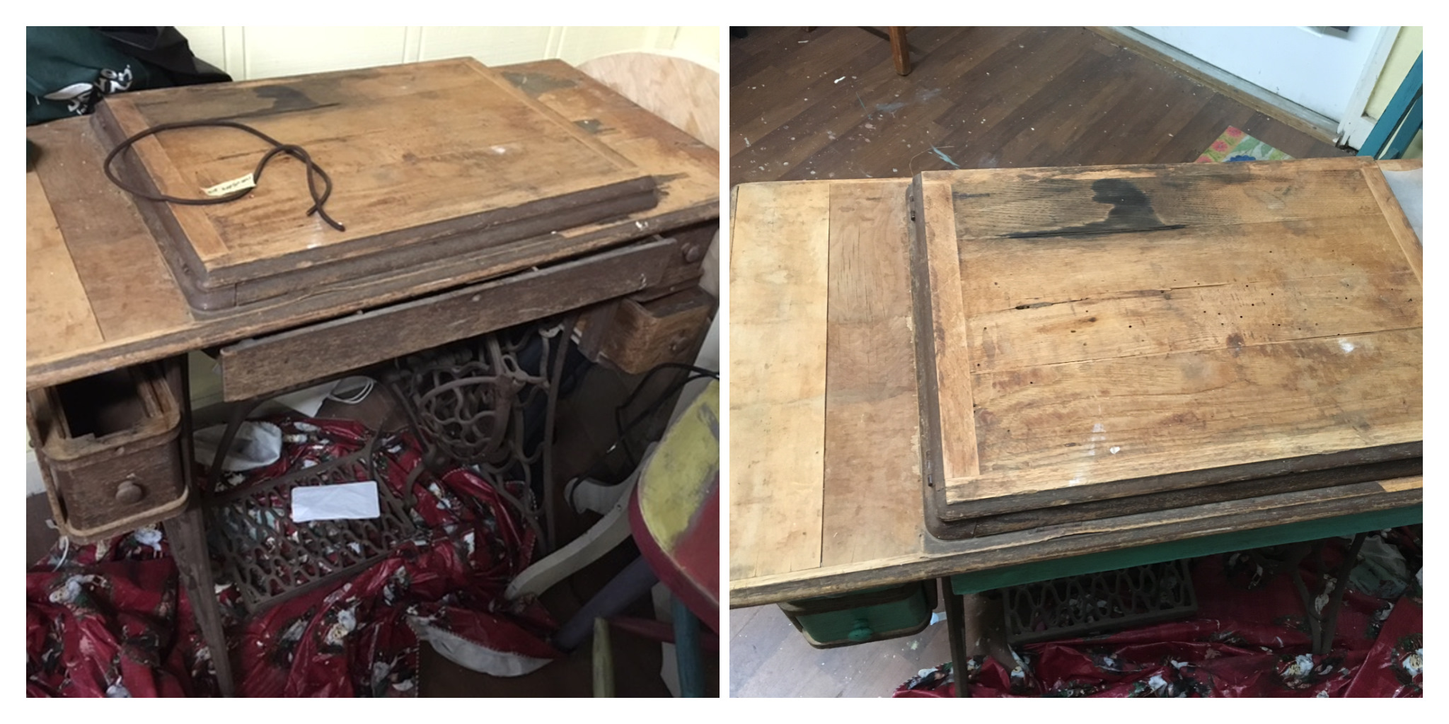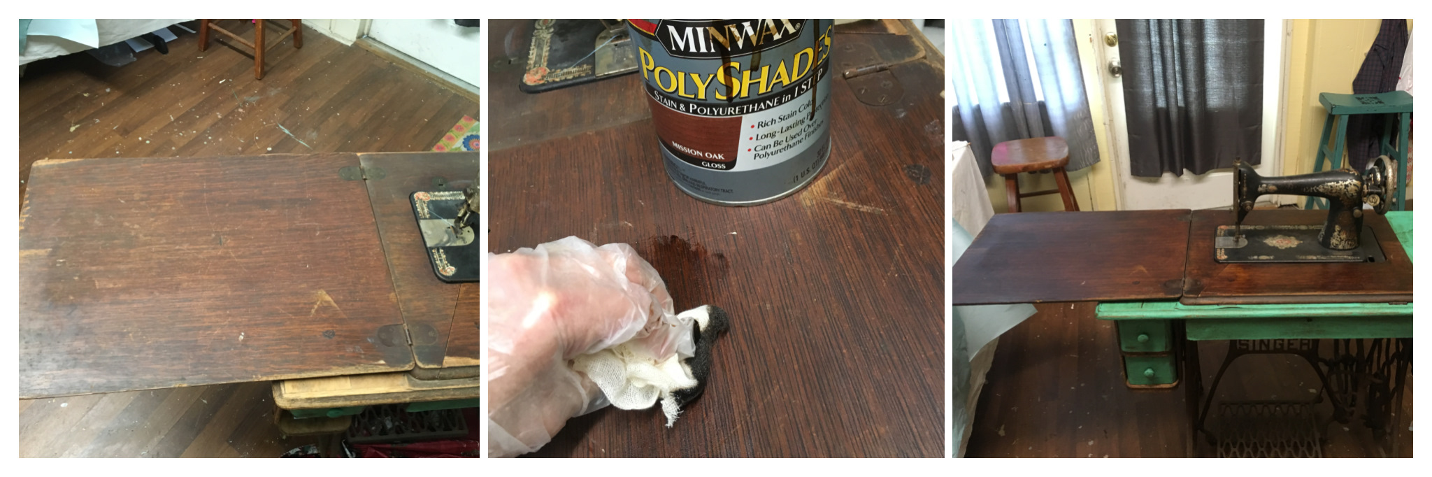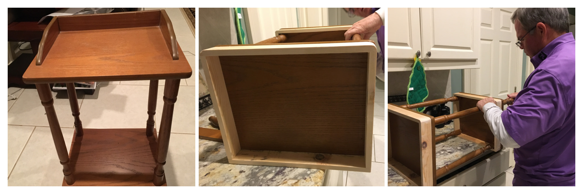 I took out the old felt lining and replaced it with some new gray felt. My husband had to make a new piece under one of the drawers for it to slide in and out on.